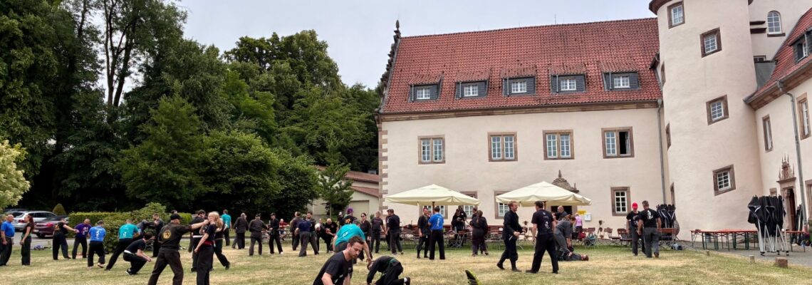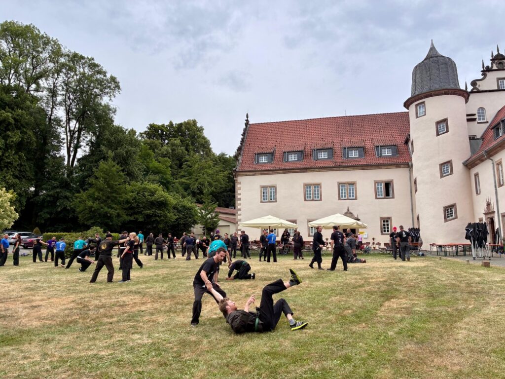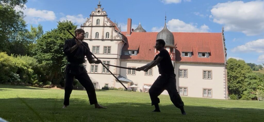 Mit diesen drei Prinzipien – Kukan (Raumgefühl), Kuzushi (Gleichgewicht brechen) und Maai (Abstand und Timing) – setzten sich die Mitglieder des Bujinkan-Dojo Niedersachsen vom TV Neuenburg auseinander, als sie Anfang Juli am Buyukai 2025 teilnahmen. Das Buyukai ist ein internationales Seminar für Ninjutsu beziehungsweise Bujinkan Budō Taijutsu, das jährlich auf Schloss Buchenau in Hessen stattfindet.