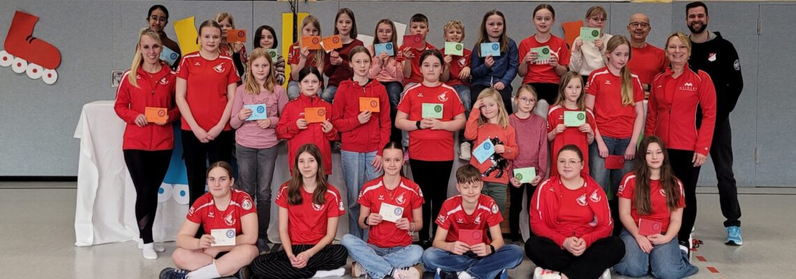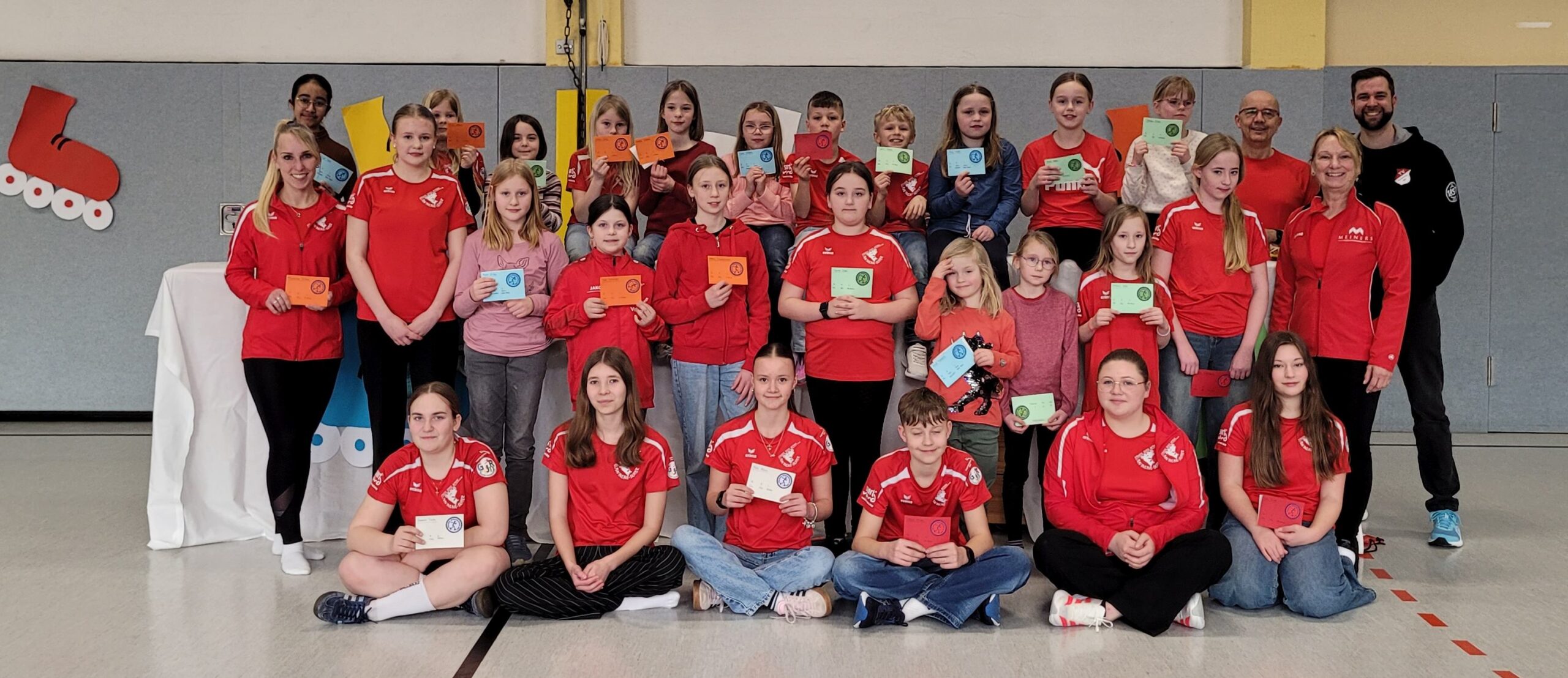 Insgesamt konnten 34 Teilnehmerinnen und Teilnehmer ihre verdienten Urkunden in der Sporthalle an der Urwaldkampfbahn in Neuenburg entgegennehmen. In einem festlichen Rahmen standen die erfolgreichen Absolventen im Mittelpunkt der Veranstaltung und erhielten neben den Urkunden einen Sticker zum Aufnähen oder Befestigen am Helm, Obst und Süßigkeiten. Die Veranstaltung war eine schöne Bestätigung für das Engagement der Sportlerinnen und Sportler aller Altersgruppen, die zudem die Unterstützung vom Verein und von den Familien erhielten.